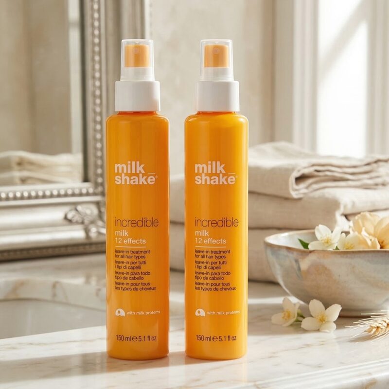 Milk Shake Leave-In Incredible Milk 150ml boasts 12 instantly noticeable benefits including un-rivalled reparative and shine properties whilst smoothing the cuticle and protecting against UV & thermal styling damage. Frizz is controlled and split ends will become a thing of the past. Colour vibrancy is also maintained and you’ll be left with enviable body and volume. All this results in hair that is beautifully soft, healthy and radiant.