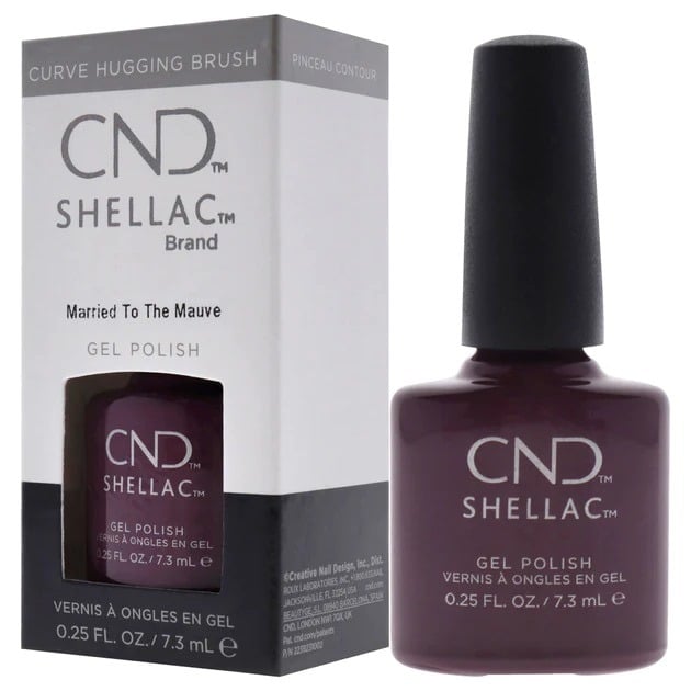 - Apply two coats of CND Shellac Gel Polish Married To The Mauve – 7.3ml, curing for 2 minutes under a UV lamp.