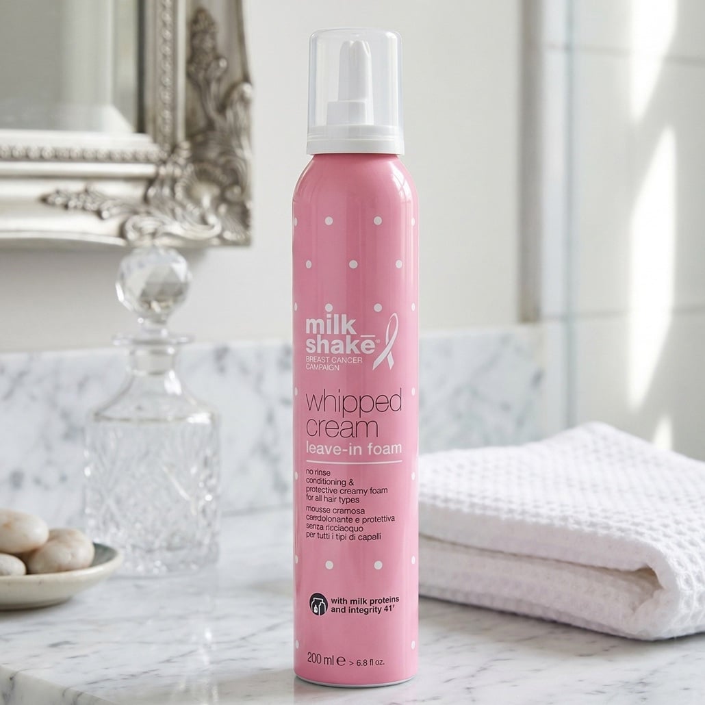 Milk_Shake Conditioning Whipped Cream Breast Cancer 200ml is a lightweight leave-in conditioner designed to nourish, protect and soften the hair. Its foam texture makes it easy to apply and evenly distribute.