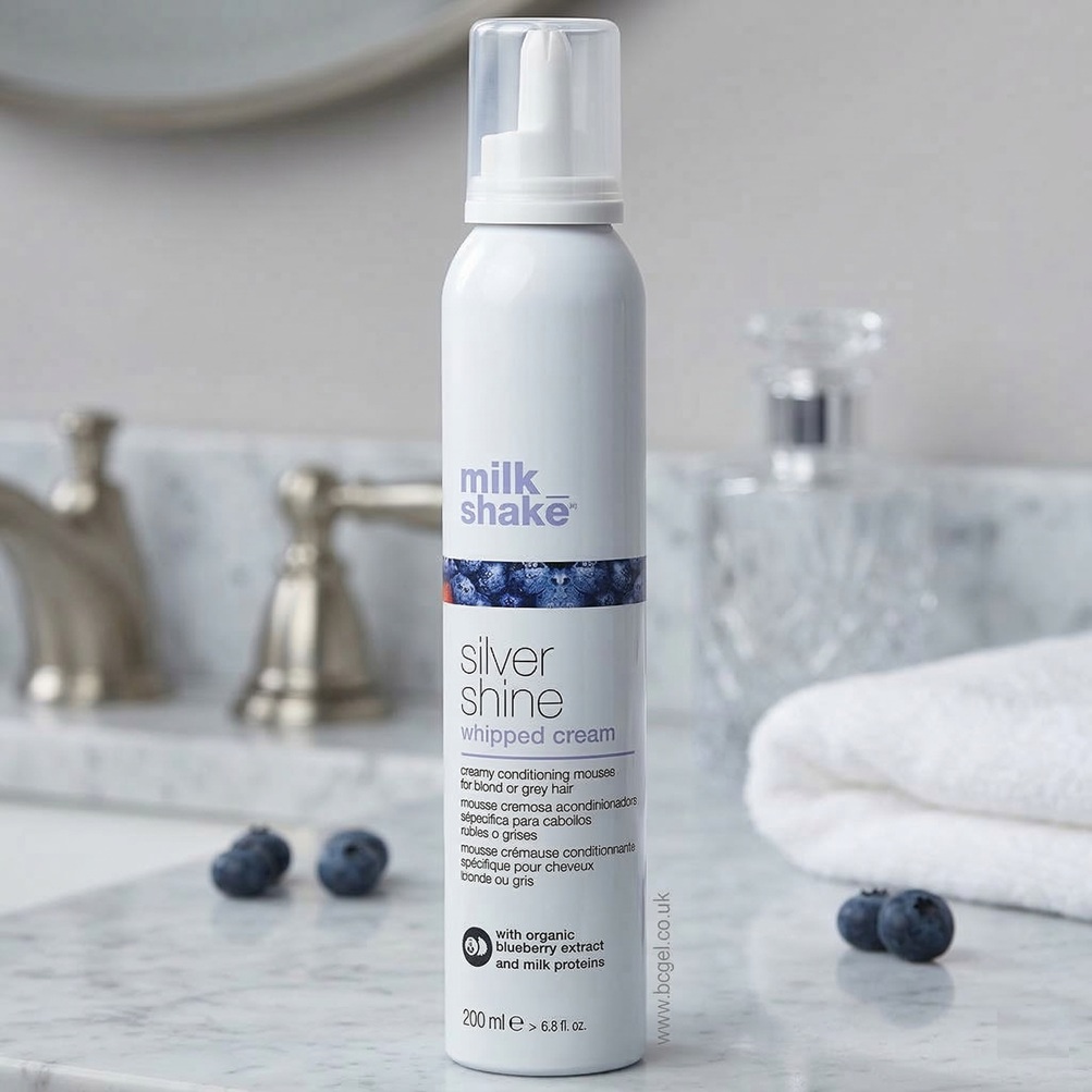 Do you struggle with unwanted yellow tones in your blonde, bleached, or grey hair? Look no further. **MILK_SHAKE Silver Shine Whipped Cream** is the perfect solution. This innovative product combines deep conditioning with effective toner action. It uses a specific violet pigment to counteract brassiness and revive your hair’s natural, cool brilliance.