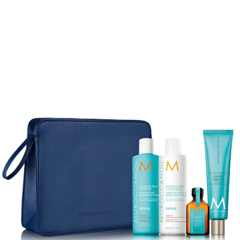 Help rebuild, revive and restore stress, damaged hair with the Moroccanoil Repair Christmas Gift Set. Featuring fortifying Moisture Repair Shampoo & Conditioner 250ml, complete the regimen with a FREE Moroccanoil Treatment 25ml, a single product that creates long-lasting smoothness, increases manageability and speeds up blow-drying time. You will also receive a Hand Cream 100ml.